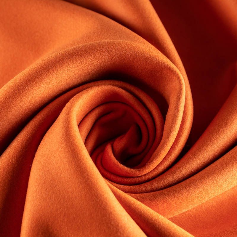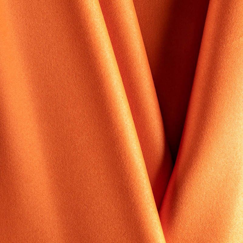 Пальтовая итальянская шерсть в оранжевом оттенке. Ткань плотная, достаточно теплая, комфортная для одежды на сезон осень-зима. Полотно имеет короткий ворс. Мягкое и нежное на ощупь, не толстое и не тяжелое, хорошо держит форму. Прекрасно подойдет для пошива женских пальто, теплых костюмов, кейпов, мягких бомберов, жилетов и головных уборов.