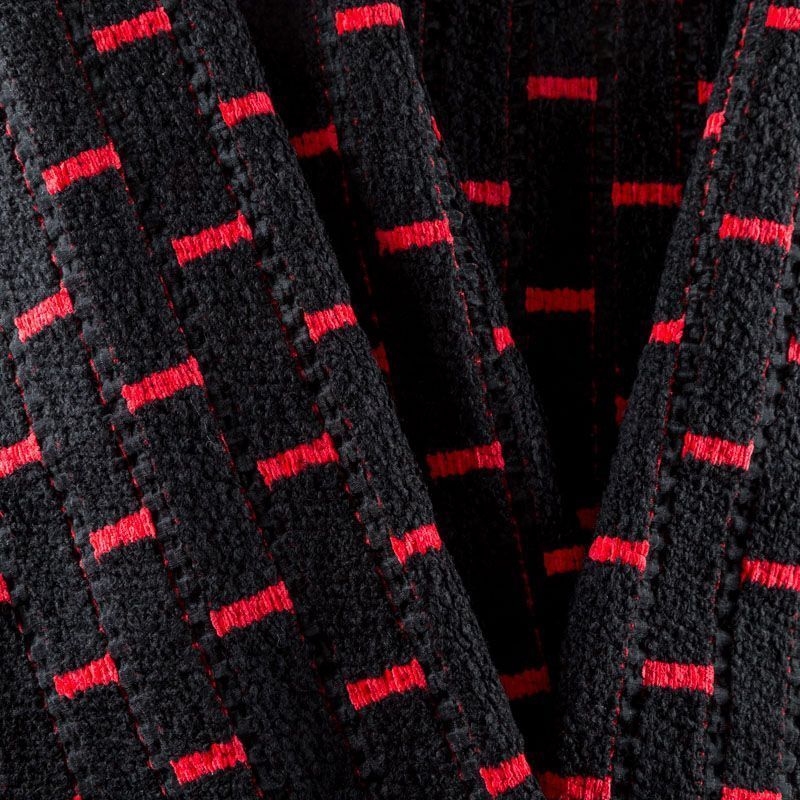 Оригинальная итальянская пальтовая 2-х сторонняя ткань в красно-черной гамме с жаккардовым геометрическим узором. Ткань плотная, достаточно теплая, комфортная для одежды на сезон осень-зима. Полотно мягкое, не тяжелое, хорошо держит форму. Прекрасно подойдет для пошива женских пальто, теплых костюмов, кейпов, мягких бомберов, жилетов и головных уборов.
