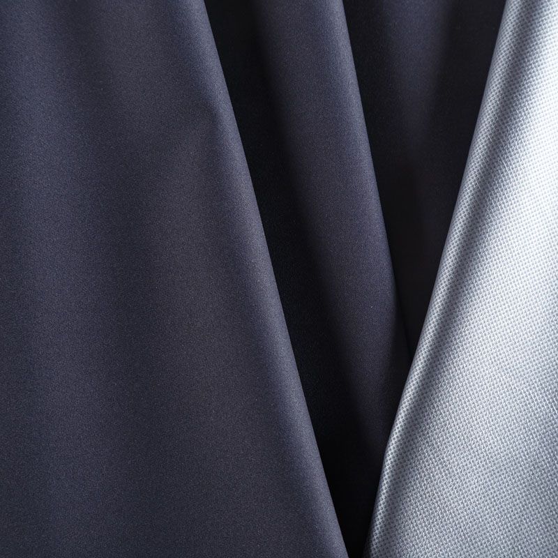 Плотная прочная плащевая ткань черного цвета с перфорированным тонким покрытием с изнаночной стороны. Поверхность ткани матовая, ровная и гладкая. Подходит для изготовления плащей, курток, ветровок, бомберов, одежды для домашних питомцев, туристического снаряжения.