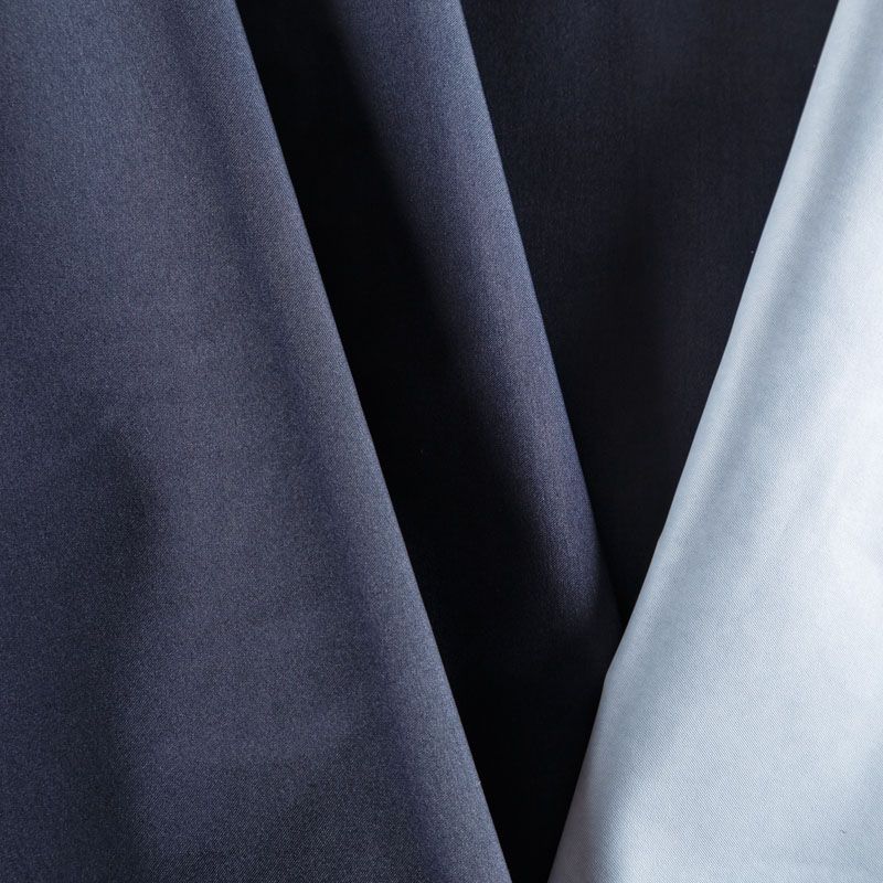 Плотная прочная плащевая ткань темно-синего цвета с полиуретановым белым покрытием с изнаночной стороны. Поверхность ткани матовая, ровная и гладкая. Подходит для изготовления  плащей, курток, ветровок, бомберов, одежды для домашних питомцев, туристического снаряжения.