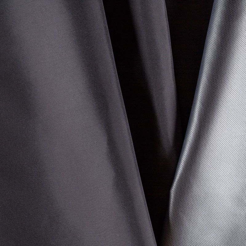 Поверхность ровная, плотная, однородная. Ткань легкая, гладкая, пластичная, хорошо держит форму, с водооталкивающей пропиткой. Подходит для изготовления  плащей, курток, ветровок, бомберов, пуховиков.