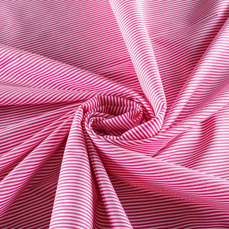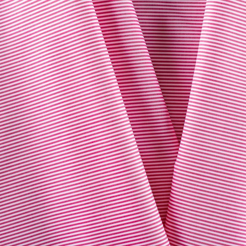 Итальянский плательно-рубашечный хлопок в частую узкую полоску малинового оттенка. Ткань мягкая, лёгкая, непрозрачная, пластичная и приятная к телу, хорошо драпируется, имеет гладкую матовую поверхность и сатиновое плетение. Прекрасно подойдет как для пошива платья-рубашки, сарафана, платьев различных фасонов, туники, топа, летнего костюма, комбинезона.