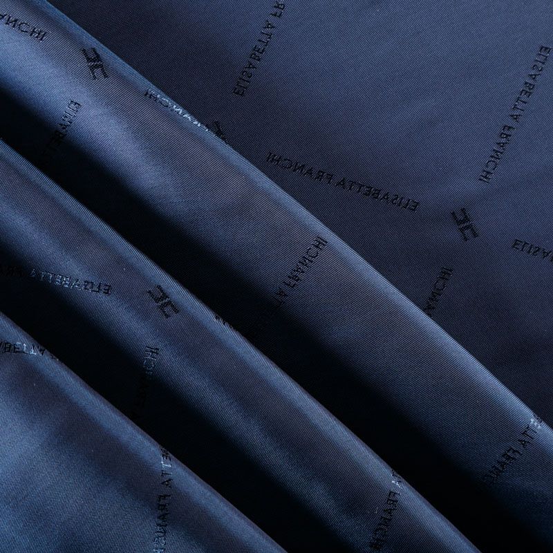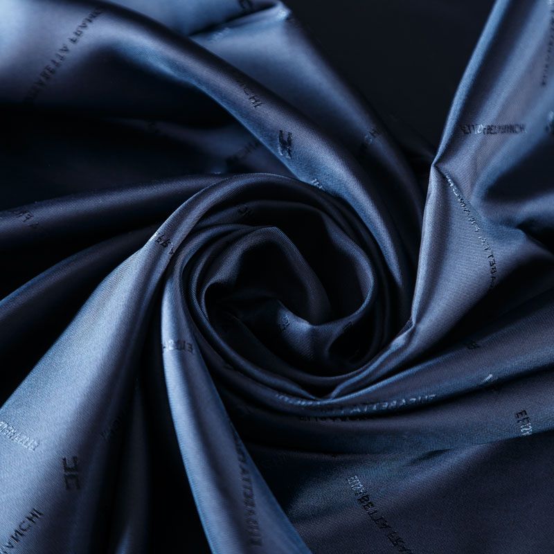 Итальянская подкладочная ткань из вискозы темно-синего оттенка с жаккардовым узором и красивым лоском. Полотно средней плотности, легкое, не просвечивает, хорошо скользит, не тянется. Подойдет для изготовления таких изделий, как пальто, костюмы, куртка, шуба, платье, жакет.