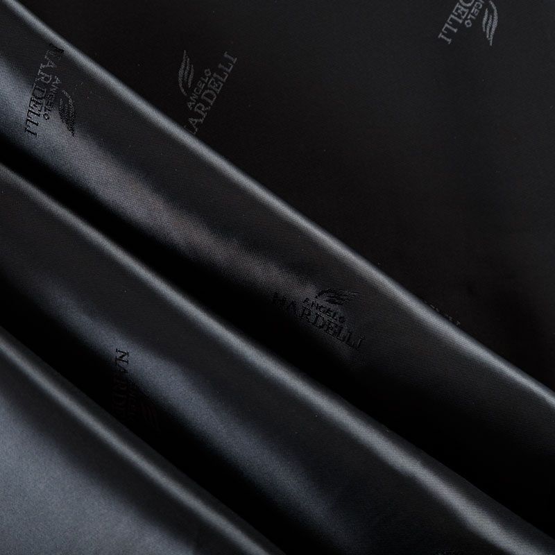 Итальянская подкладочная ткань из вискозы черного оттенка с редким жаккардовым узором и красивым лоском. Полотно средней плотности, легкое, не просвечивает, хорошо скользит, не тянется. Подойдет для изготовления таких изделий, как пальто, костюмы, куртка, шуба, платье, жакет.