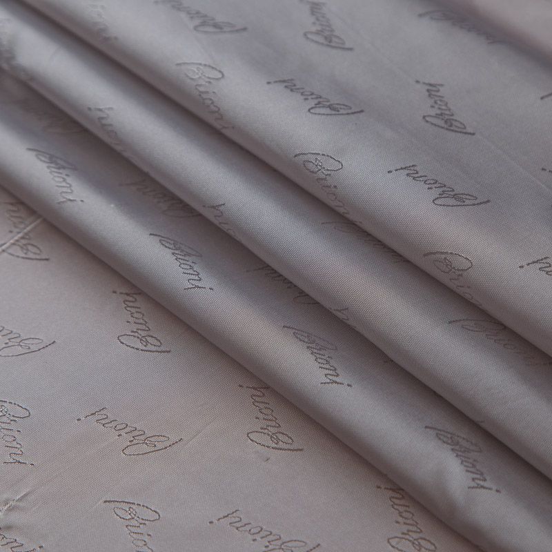 Итальянская подкладочная вискоза из коллекции Brioni. Ткань имеет очень плотное сатиновое плетение, по всей поверхности расположены лого бренда. Подойдет в качестве подклада не только для изделий костюмной группы, но и для верхней одежды: пальто, бомбер, парка, куртка, шуба.