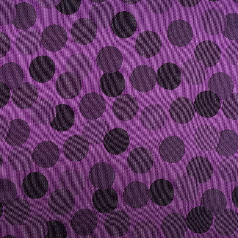 Подкладочная ткань легкая, с жаккардовым крупным "горохом", лилового оттенка, с красивым блеском. Не просвечивает, хорошо скользит. Подойдет для изготовления таких изделий, как пальто, костюмы, куртка, шуба, платье, жакет.