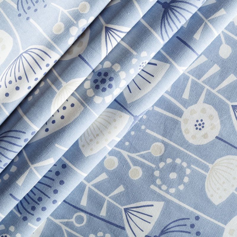 Хлопковая портьерная ткань Берген из коллекции Сканди английского производителя Fryett's Fabric. На голубой текстурированной основе наснесен принт в виде стилизованных растений и цветов в монохромной гамме. Ткань средней плотности, прекрасно держит форму, драпируется в устойчивые складки. Подойдет для классических портьер, римских штор, покрывал, подушек, скатертей, салфеток и других элементов текстильного интерьера как в самостоятельном исполнении, так и качестве компаньона к однотонным варинтам.