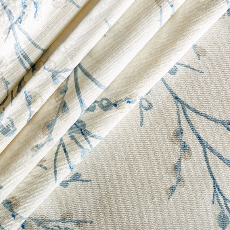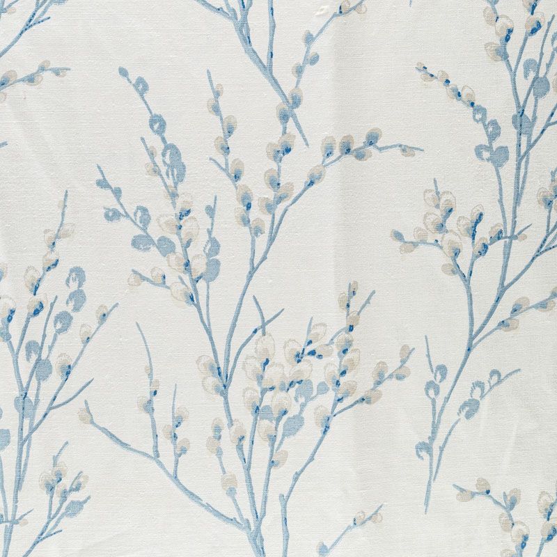 Хлопковая портьерная ткань с изящным весенним принтом в голубых оттенках на молочном теплом фоне. Ткань средней плотности, без блеска, хорошо драпируется, имеет полонтяное переплетение. Можно использовать для пошива портьер, римской шторы, салфеток, столового белья, подушек, покрывал и других предметов текстильного интерьера.