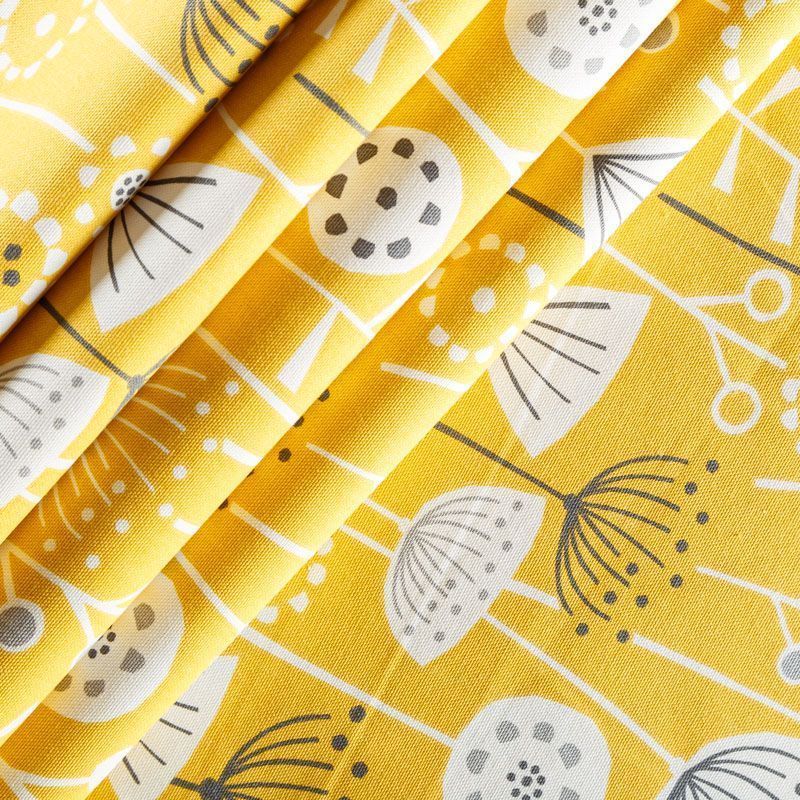 Хлопковая портьерная ткань Берген из коллекции Сканди английского производителя Fryett's Fabric. На желтой текстурированной основе наснесен принт в виде стилизованных растений и цветов в монохромной гамме. Ткань средней плотности, прекрасно держит форму, драпируется в устойчивые складки. Подойдет для классических портьер, римских штор, покрывал, подушек, скатертей, салфеток и других элементов текстильного интерьера как в самостоятельном исполнении, так и качестве компаньона к однотонным варинтам.