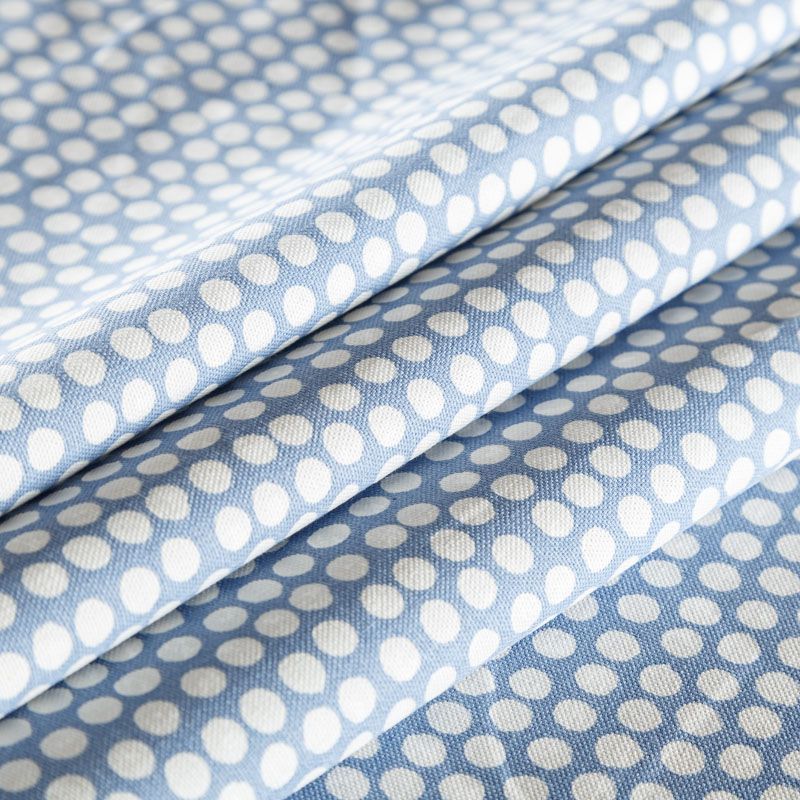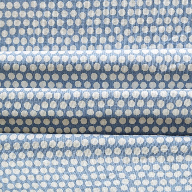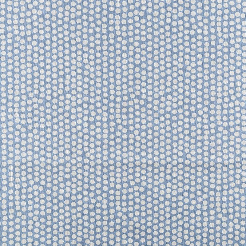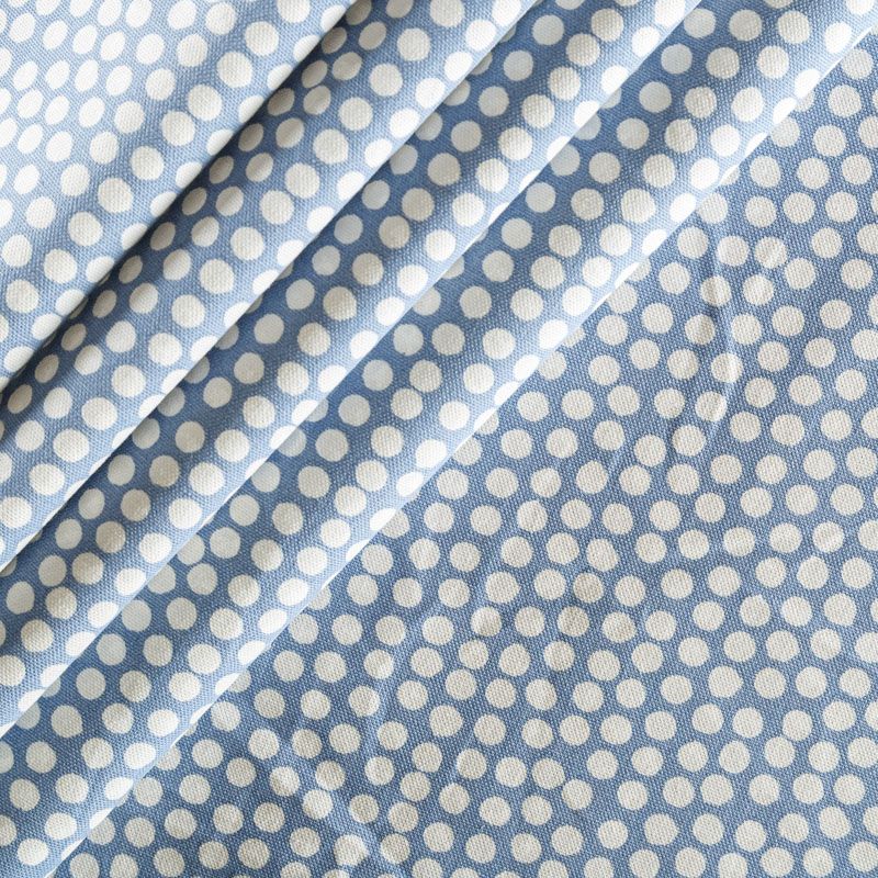 Хлопковая портьерная ткань Спотти из коллекции Сканди английского производителя Fryett's Fabric. На голубой текстурированной основе наснесен принт в виде белых кружков-пятнышек. Ткань средней плотности, прекрасно держит форму, драпируется в устойчивые складки. Подойдет для классических портьер, римских штор, покрывал, подушек, скатертей, салфеток и других элементов текстильного интерьера как в самостоятельном исполнении, так и качестве компаньона к однотонным варинтам.