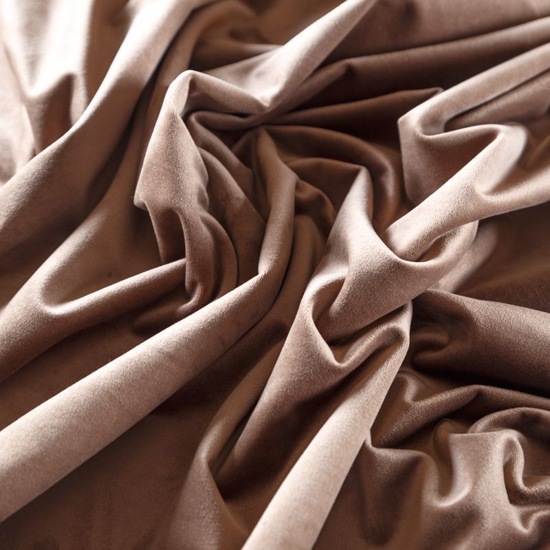 Портьерная ткань бархат с коротким ворсом. Красиво, мягко и пластично драпируется, ложась мягкими, струящимися складками, приятная на ощупь, поверхность отливает благородным блеском. Этот бархат предназначен для пошива штор, покрывал, декоративных подушек и других текстильных предметов интерьера. Портьеры из этой ткани задерживают свет и приглушают звуки. Особенно богато смотрится в гостиных и спальных комнатах.