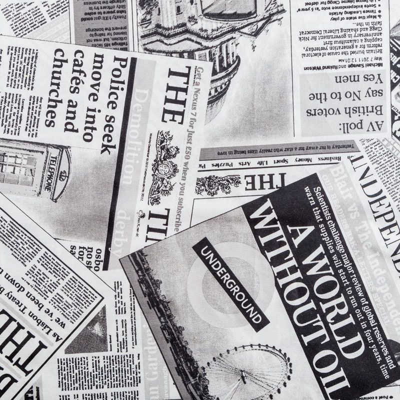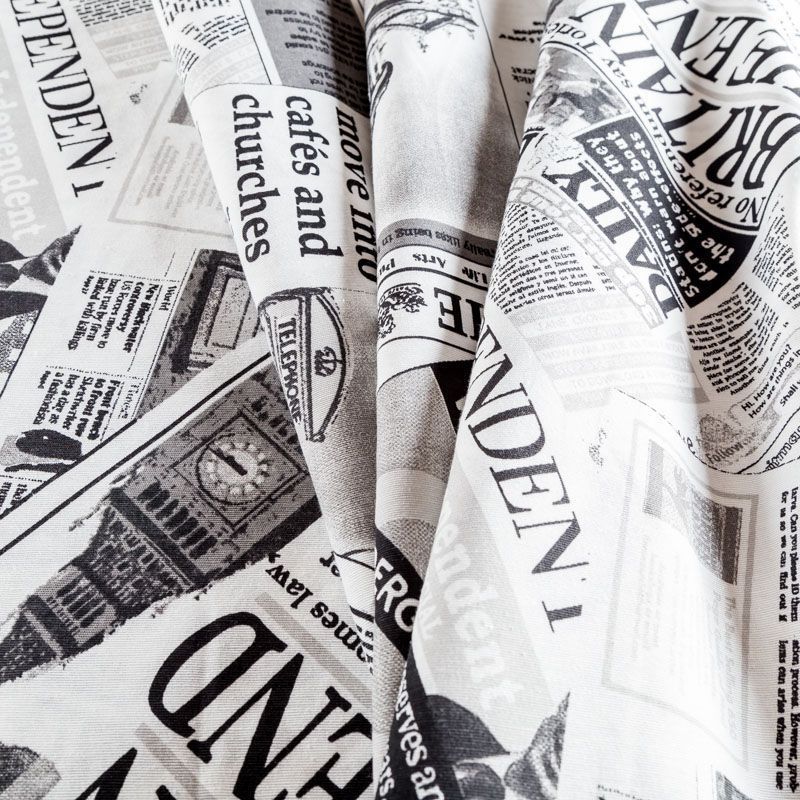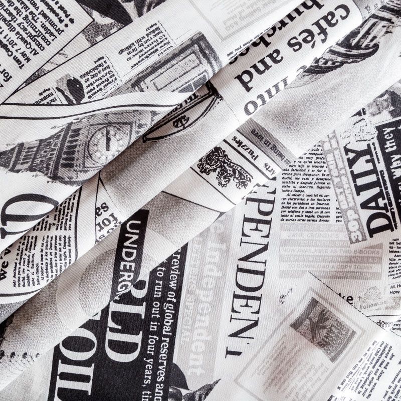 Декоративный смесовый хлопок со стилизованным газетным принтом от испанского производителя Visatex. Ткань средней плотности, приятная и гладкая на ощупь. Интересный вариант для пошива штор, декоративных подушек и покрывал, изготовления текстильных элементов в кухнях-столовых, гостинных, спальнях и даже детских.