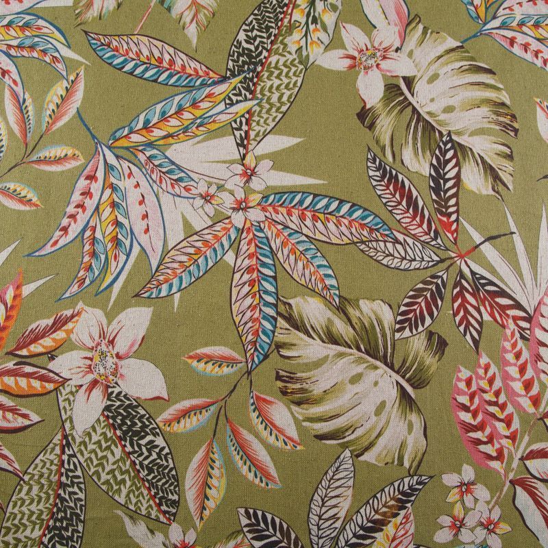Декоративная портьерная ткань с шикарным натуральным составом и флористическим трендовым принтом от испанского производителя Visatex. Ткань средней плотности, приятная на ощупь, слегка фактурная из-за натуральных вовлокон. Интересный вариант для пошива штор, декоративных подушек и покрывал, изготовления текстильных элементов в кухнях-столовых, гостинных, спальнях и даже детских.
