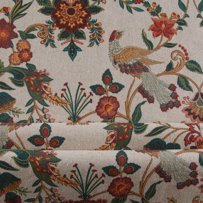Декоративная портьерная ткань с шикарным натуральным составом и фантазийным принтом от испанского производителя Visatex. Ткань средней плотности, приятная на ощупь, слегка фактурная из-за натуральных вовлокон. Интересный вариант для пошива штор, декоративных подушек и покрывал, изготовления текстильных элементов в кухнях-столовых, гостинных, спальнях и даже детских.