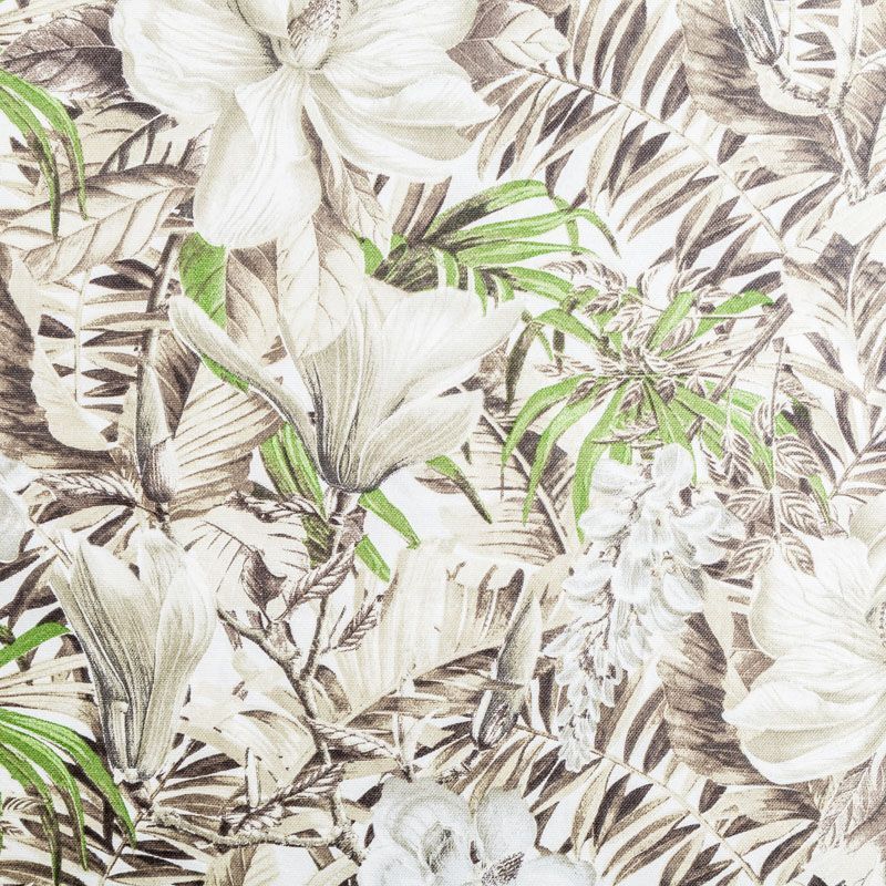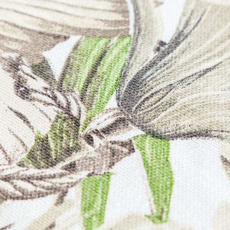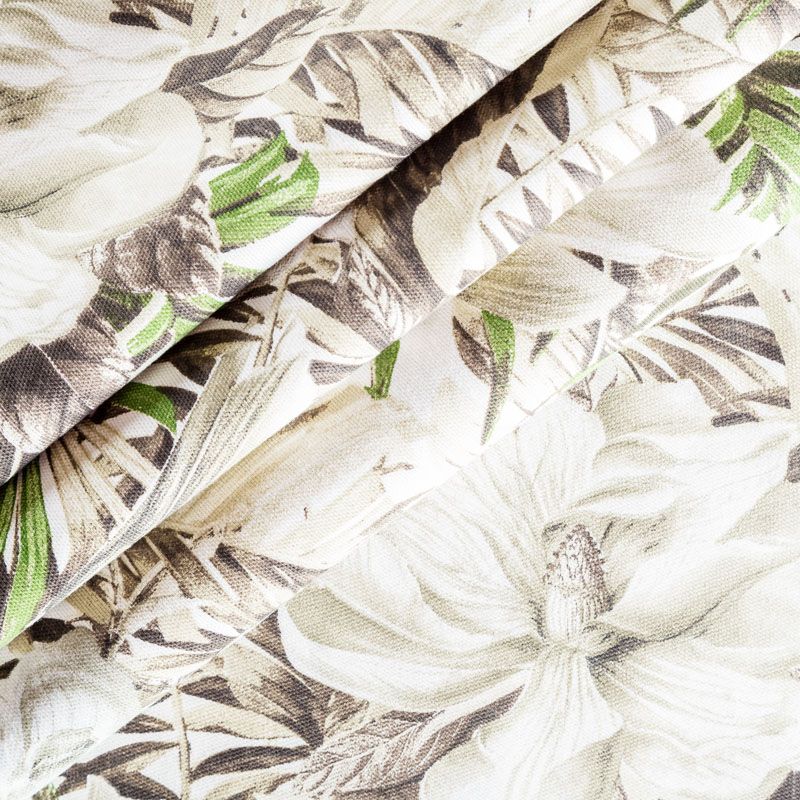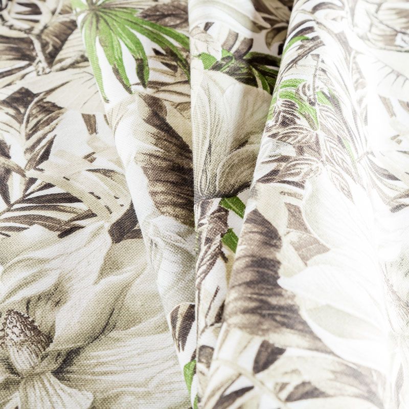Декоративный смесовый хлопок с тропическим принтом от испанского производителя Visatex. Ткань средней плотности, приятная и гладкая на ощупь. Интересный вариант для пошива штор, декоративных подушек и покрывал, изготовления текстильных элементов в кухнях-столовых, гостинных, спальнях и даже детских.