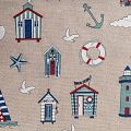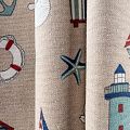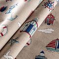 Испанская смесовая ткань с добавлением хлопка песочного цвета с "морским" принтом. Средней плотности, без блеска, хорошо драпируется, имеет полонтяное переплетение. Сочетает оттенки природных цветов льна, индиго. Прекрасно подойдет для оформления детской или дачного интерьера. Можно использовать для пошива портьер, римской шторы, салфеток, столового белья, подушек, покрывал, обивки мебели.