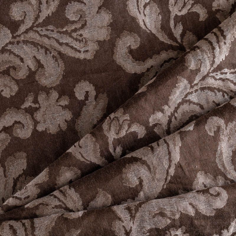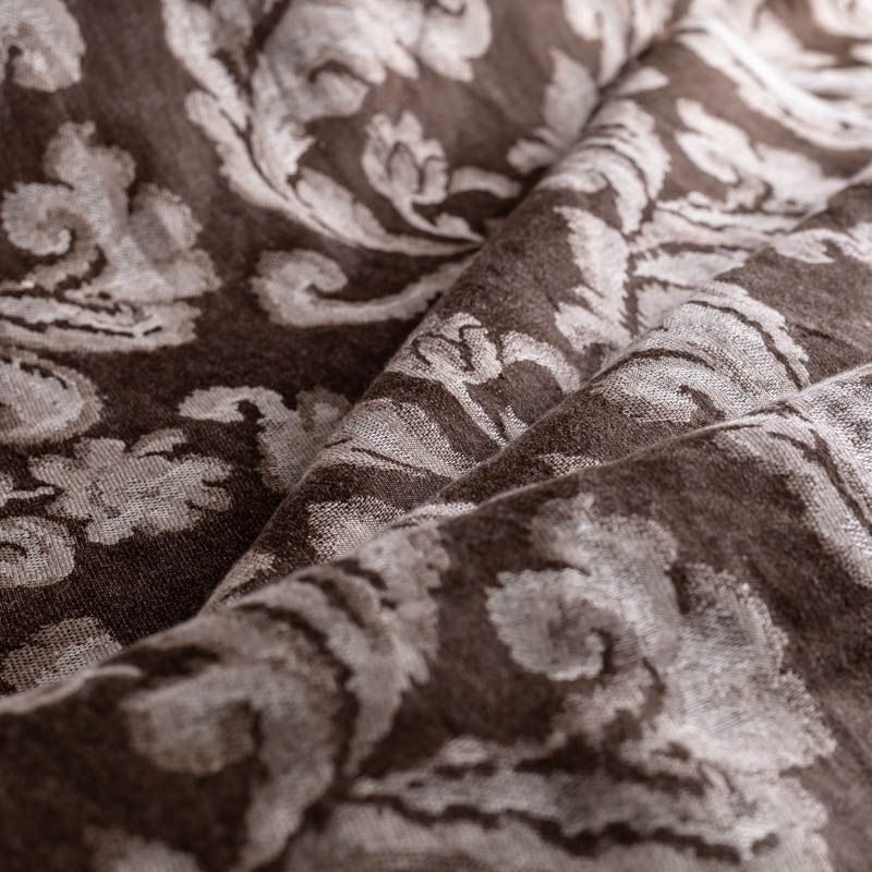 Натуральная льняная жаккардовая портьера с классическим растительным орнаментом в шоколадной цветовой гамме. Ткань плотная, тяжелая, может драпироваться в большие складки. Лен подойдет для плотных штор, покрывал, подушек, скатертей и салфеток, обивки мебели, Прекрасно впишется в интерьер как в совеременном стиле, так и в стиле прованс.