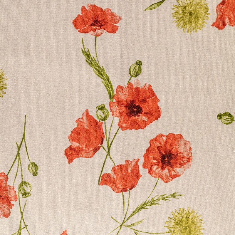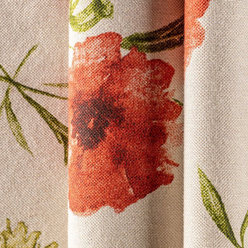 Принтованная ткань с цветочным дизайном, выполненный на смесовой основе. Ткань очень приятная на ощупь за счёт хлопка в составе и очень универсальная, прекрасно подойдет для оформления интерьеров в английском стиле, прованс, кантри, шебби шик. Может использоваться  для пошива портьер, римской шторы, покрывала, чехлов для мебели, скатертей, салфеток, подушек и других предметов тектильного интерьера.