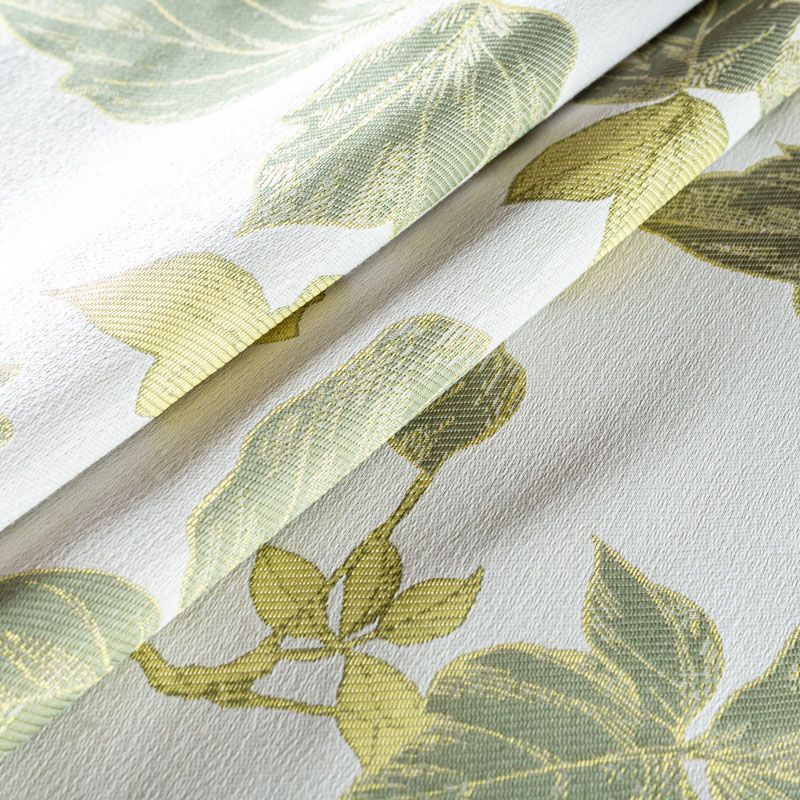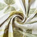 Жаккардовая ткань немецкого производства с крупным растительным принтом в салатово-зеленых оттенках. Поверхность ткани матовая, фактурная. Подойдет для оформления интерьера кухни-столовой, спальни, детской комнаты в качестве портьер, римской шторы, покрывала, подушек, чехлов для мебели в современном стиле.