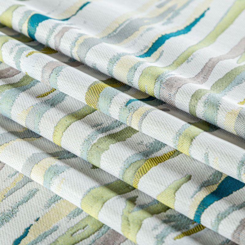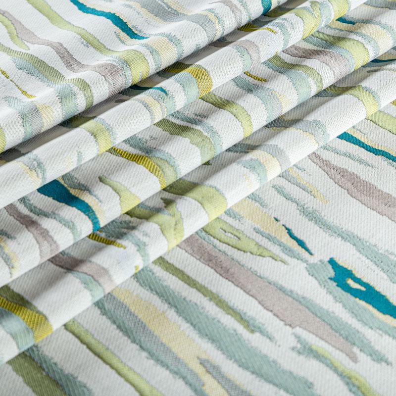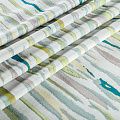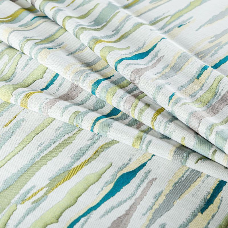 Стильная жаккардовая ткань зеленого оттенка с абстрактным рисунком из коллекции Эльтам известного бренда Fryett's. Ткань средней плотности, имеет фактурную матовую поверхность, прекрасно держит форму, хорошо драпируется. Ткани этой коллекции прекрасно впишутся в традиционный и современный интерьер в качестве римской или классической шторы, подушек, обивки мебели.