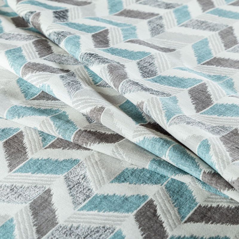 Стильная жаккардовая ткань серо-голубого оттенка с геометрическим узором "зиг-заг" из коллекции Зена известного бренда Fryett's. Ткань высокой плотности, имеет матовую фактурную поверхность, прекрасно держит форму. Ткани этой коллекции прекрасно впишутся в традиционный и современный интерьер в качестве римской или классической шторы, подушек, обивки мебели.