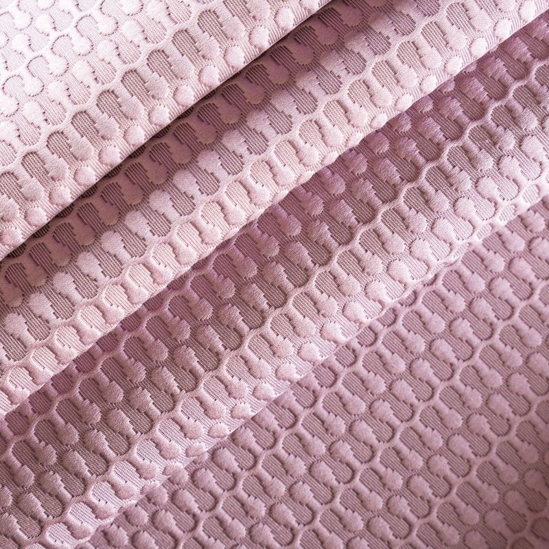 Стильная ткань сиреневого оттенка с объемным жаккардовым абстрактным дизайном из коллекции Нова известного бренда Fryett's. Ткань высокой плотности, имеет фактурную поверхность и сдержанный сатиновый блеск, прекрасно держит форму. Ткани этой коллекции прекрасно впишутся в традиционный и современный интерьер в качестве римской или классической шторы, покрывала, подушек, чехдлов для мебели.