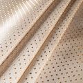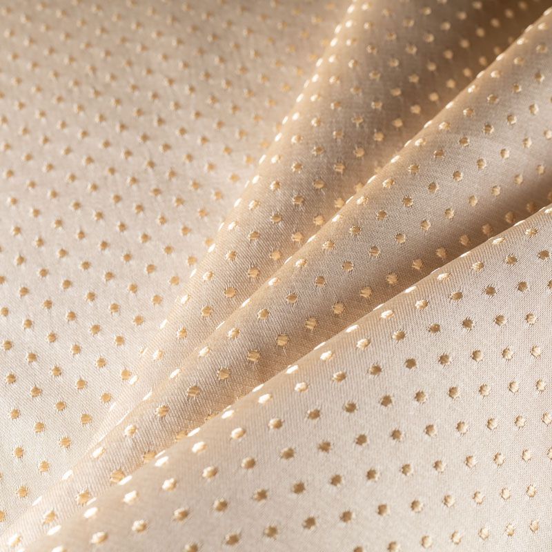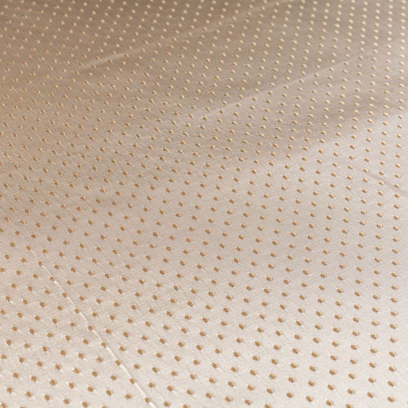 Универсальный жаккардовый рисунок в виде мелкого горошка золотого цвета идеален для оформления интерьера в большинстве стилей. Ткань средней плотности, хорошо держит форму и драпируется. Рекомендуется для пошива штор, декоративных чехлов, покрывал, изготовления столового белья, подушек, скатертей и салфеток.