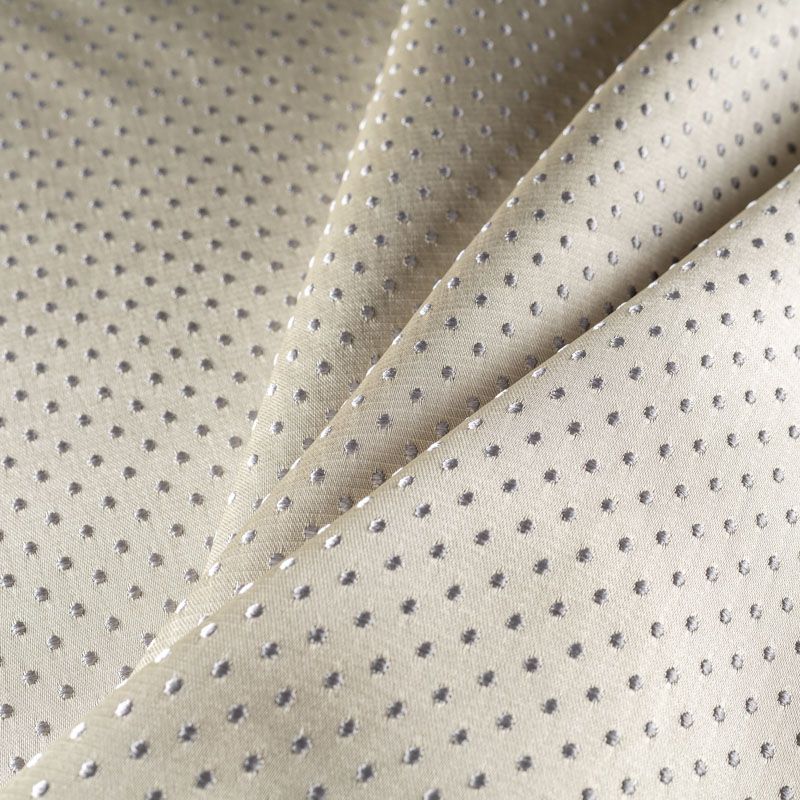 Универсальный жаккардовый рисунок в виде мелкого горошка сине-серебристого оттенка идеален для оформления интерьера в большинстве стилей. Ткань средней плотности, хорошо держит форму и драпируется. Рекомендуется для пошива штор, декоративных чехлов, покрывал, изготовления столового белья, подушек, скатертей и салфеток.