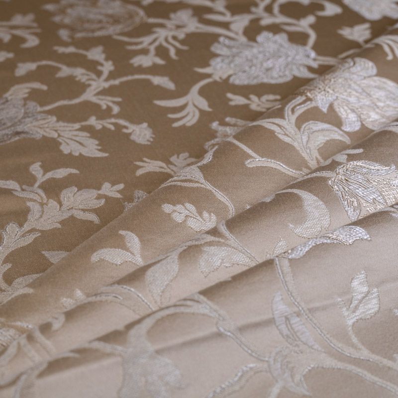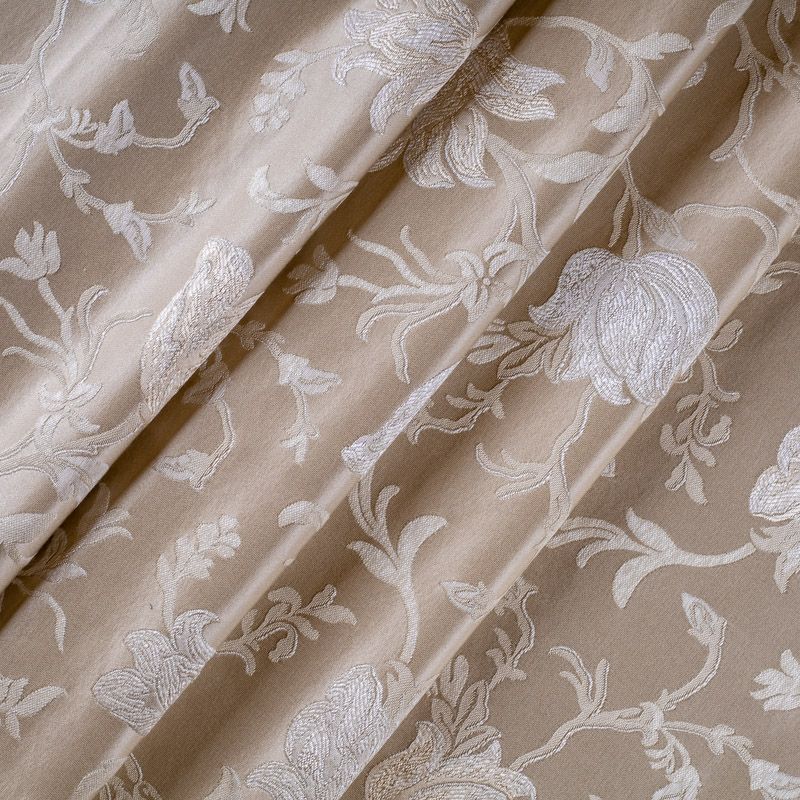 Эксклюзивная портьерная ткань с жаккардовым плетением - имитацией вышивки. Подойдет для пошива штор, а также подушек, покрывал, легкой обивки мебели, создания итерьера в классическом стиле.