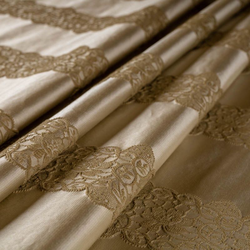 Итальянский жаккард на основе хлопка с добавлением шелковых нитей. Однотонный благородный основной оттенок декорирован ажурными стильними, утонченными, вертикальными полосками с флористическими мотивами. Ткань отлично впишется в любой интерьер – от классики до модерна. Подойдет для пошива покрывал, наволочек, легкой обивки мебели и других элементов декора.