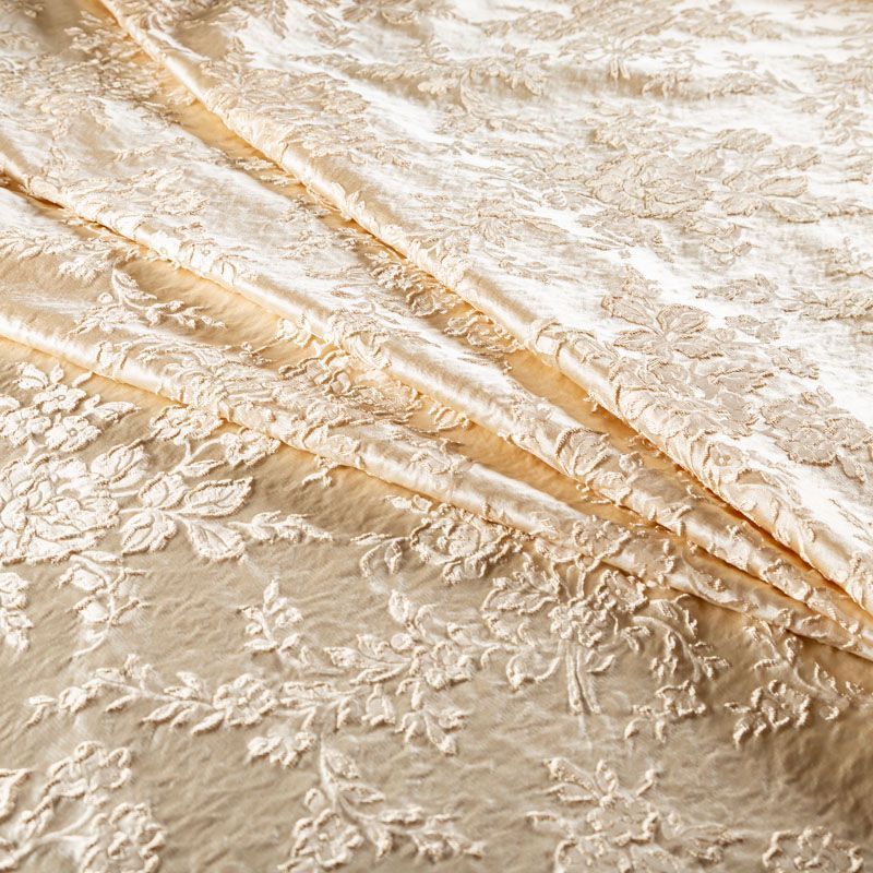 Элегантная коллекция шелковых жаккардов с цветочным рисунком выполненна в однотонном сдержанном варианте. Но различные ткацкие переплетения, использованные при создании ткани, создают объемность рисунка,  эффект роскоши придает благородный блеск полотна. Элементы мебели или декора, шторы и ламбрекены, выполненные с использованием этой ткани, создадут атмосферу наполняющую душу покоем и гармонией.