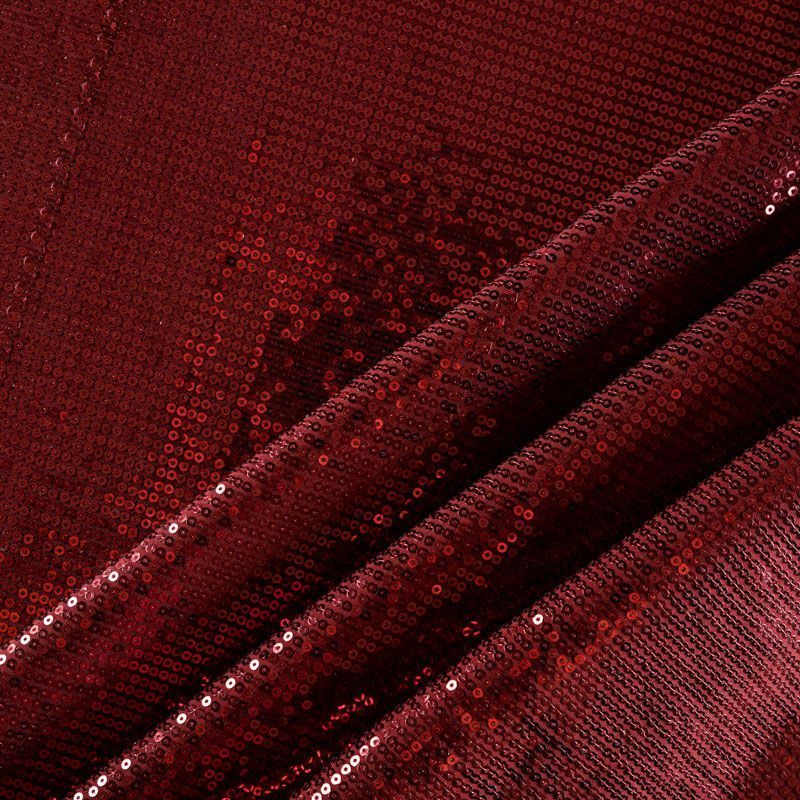 Блестящие пайетки благородного багрового оттенка. Мелкие, размером около 3 мм. Основа - трикотажное полотно, комфортное в носке. Ткань не прозрачная, тянется.  Подойдет для вечернего коктельного платья или юбки, комбинезона, топа, танцевальных и сценических костюмов.