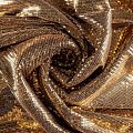 Блестящие пайетки золотого оттенка. Мелкие, размером около 3 мм. Основа - черное трикотажное полотно, комфортное в носке. Ткань не прозрачная, тянется.  Подойдет для вечернего коктельного платья или юбки, комбинезона, топа, танцевальных и сценических костюмов.