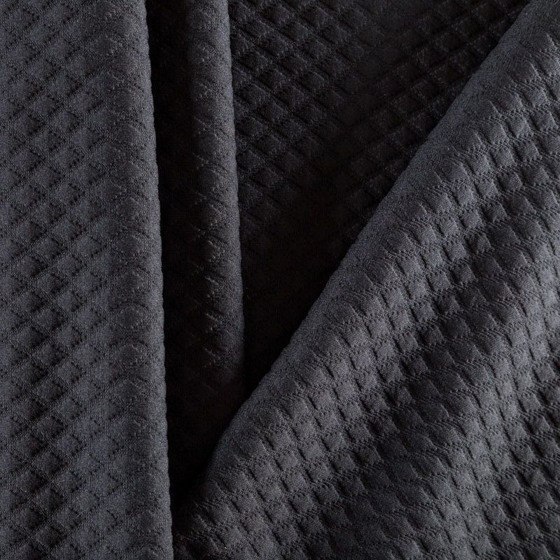 Плотное трикотажное полотно с имитацией стежки. Поверхность ткани объемная, мягкая, приятная на ощупь. Трикотаж не просвечивается, хорошо тянется за счет эластана в составе, держит форму. Прекрасно подойдет для пошива легких пальто, курток, бомберов, кардиганов, платьев, юбок, шорт.