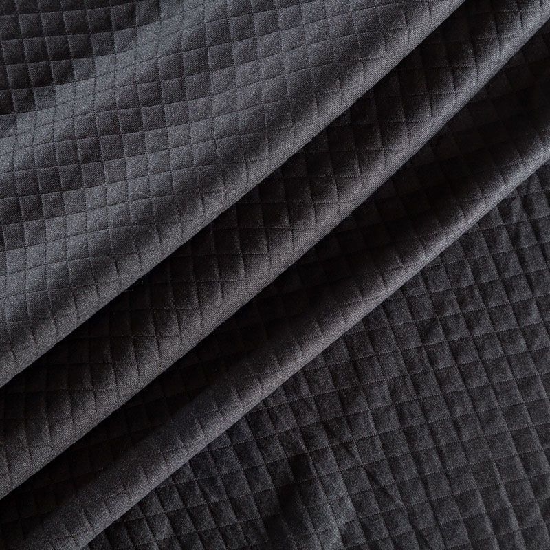 Плотное трикотажное полотно с имитацией стежки. Поверхность ткани объемная, мягкая, приятная на ощупь. Трикотаж не просвечивается, хорошо тянется за счет эластана в составе, держит форму. Прекрасно подойдет для пошива легких пальто, курток, бомберов, кардиганов, платьев, юбок, шорт.
