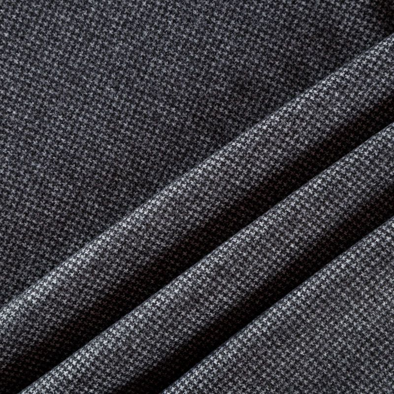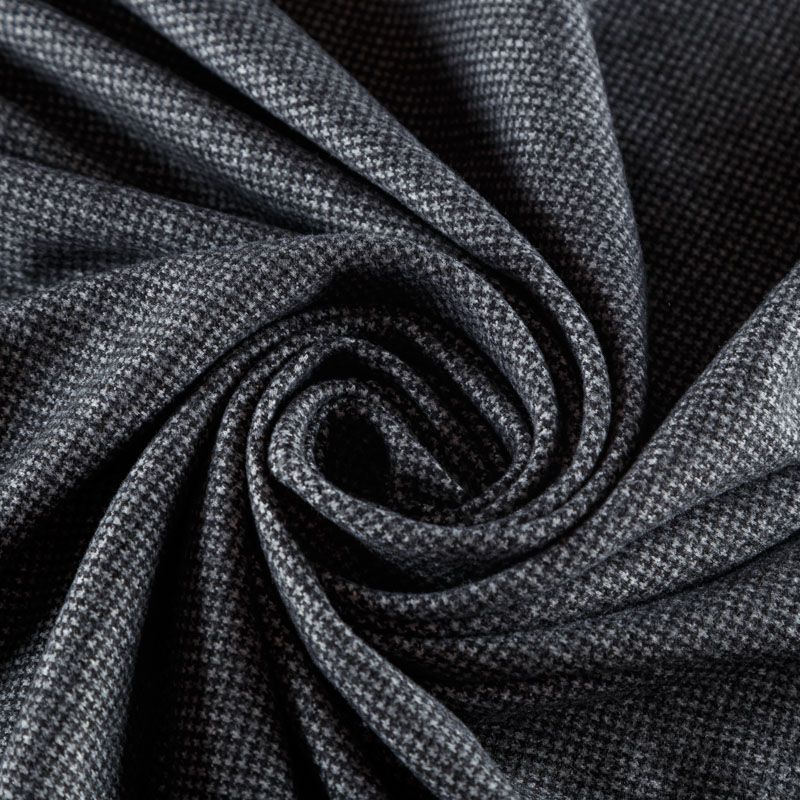 Трикотаж средней толщины, хорошо тянется за счет эластана в составе. Мелкий ненавязчивый узор "гусиная лапка" образуется переплетением черных и белых нитей. Ткань не сухая, мягкая, но плотная, не просвечивает, теплая, хорошо драпируется. Отлично подойдет для пошива легкой верхней одежды, жакетов, костюмов, юбок.