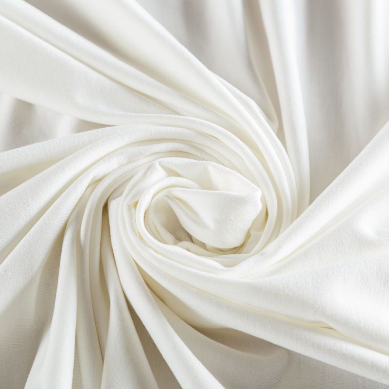 Смесовое трикотажное полотно с гладкой однородной поверхностью, которое особенно эффектно смотрится в драпировке. Материал средней плотности, не просвечивает, приятный к телу и комфортный в носке. Подойдет для пошива топов, футболок, бадлонов, лонгслива, кардигана, спортивного платья, джоггеров, шорт.