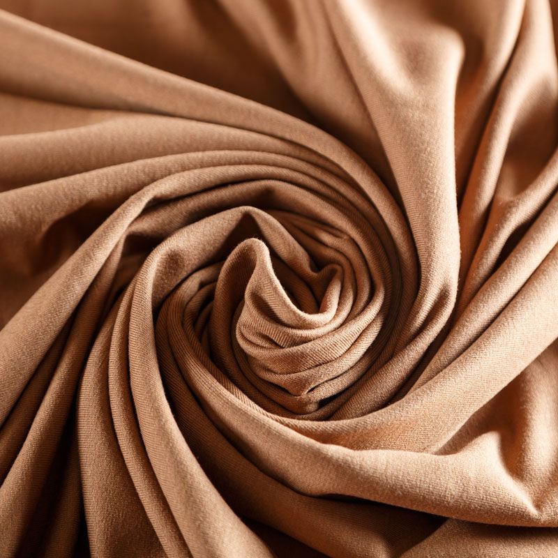 Смесовое трикотажное полотно с гладкой однородной поверхностью, которое особенно эффектно смотрится в драпировке. Материал средней плотности, не просвечивает, приятный к телу и комфортный в носке. Подойдет для пошива топов, футболок, бадлонов, лонгслива, кардигана, спортивного платья, джоггеров, шорт.