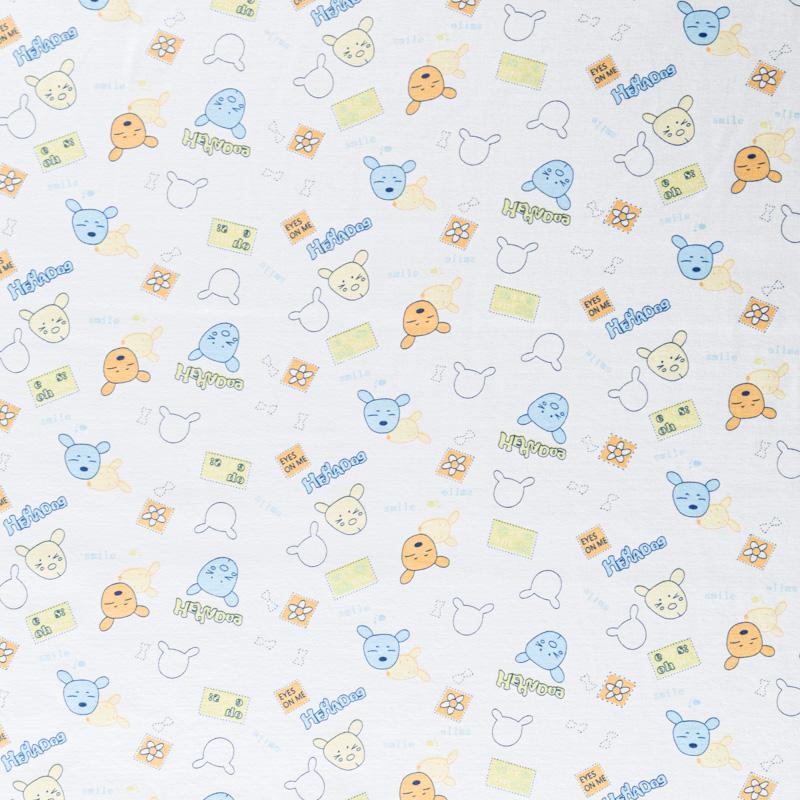 Приятный на ощупь, гладкий хлопковый трикотаж-кулирка с эластаном, средней плотности с веселым детским принтом. Подойдет для пошива нижнего белья, изделий для детей, а также для спортивной и домашней одежды, пижамы.