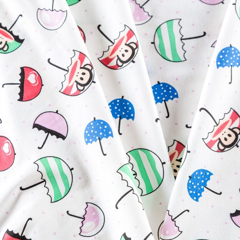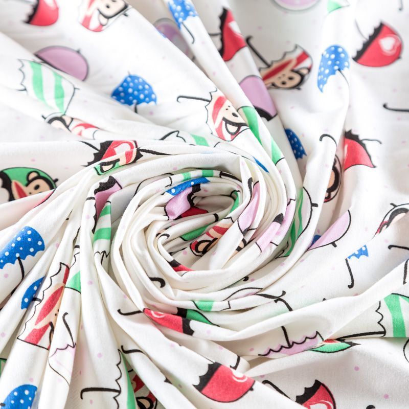 Приятный на ощупь, гладкий хлопковый трикотаж-кулирка с эластаном, средней плотности с веселым детским принтом. Подойдет для пошива нижнего белья, изделий для детей, а также для спортивной и домашней одежды, пижамы.