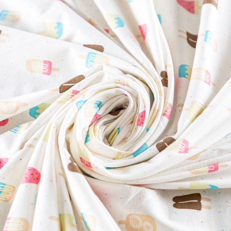 Приятный на ощупь, гладкий хлопковый трикотаж-кулирка с эластаном, средней плотности с веселым детским принтом. Подойдет для пошива нижнего белья, изделий для детей, а также для спортивной и домашней одежды, пижамы.
