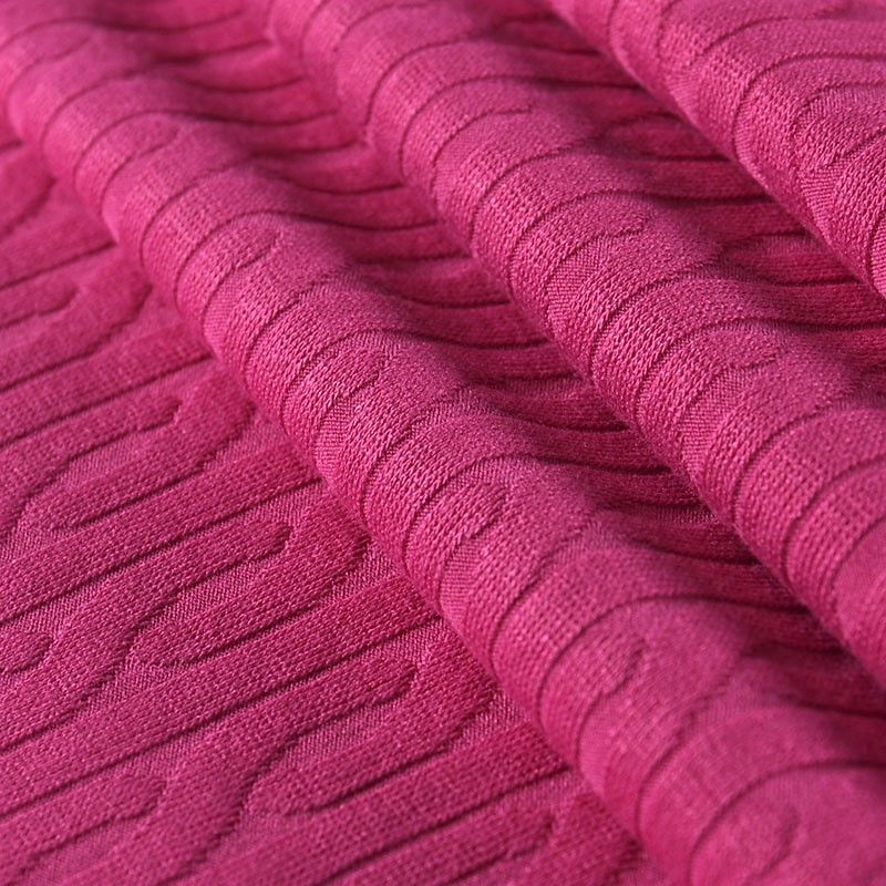 Текстурное вязаное, мягкое, пластичное полотно средней плотности. Вязаный узор - стилизованая косичка, расположен по всему полотну. Подойдет для пошива боди, топа, лонгслива, кардигана, юбки, платья, водолазок, снудов.