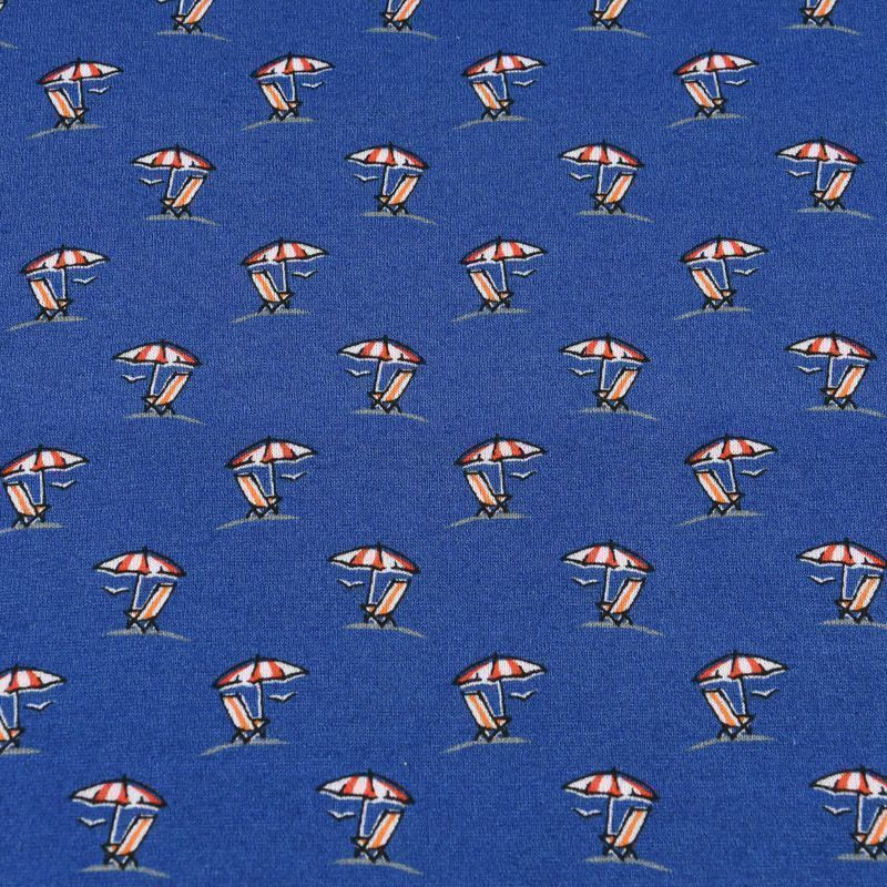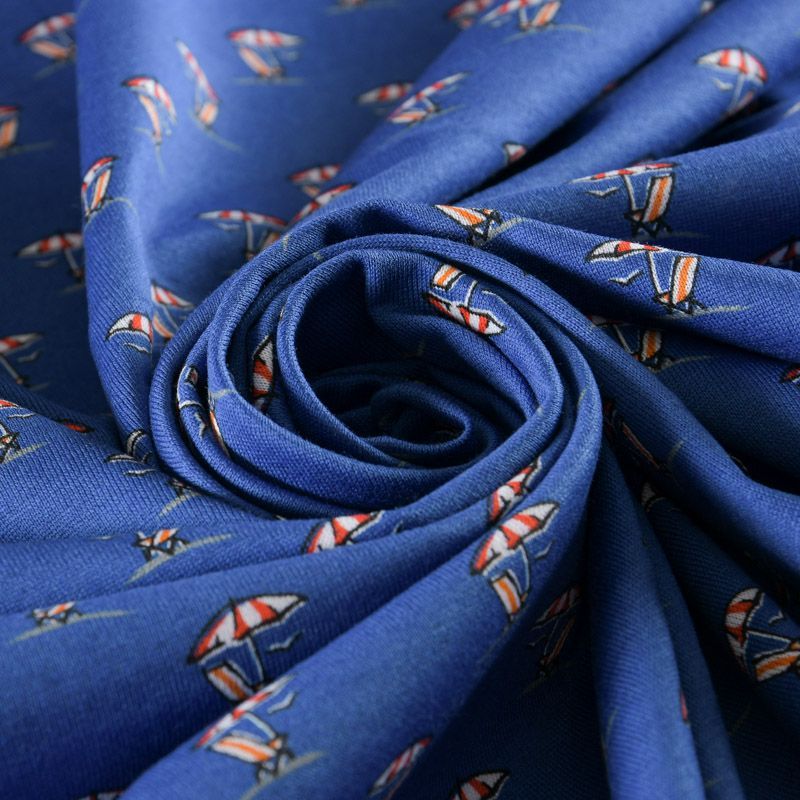 Итальянский брендовый трикотаж из хлопка с добавлением эластана темно-синего оттенка с мелким принтом. Полотно достаточно тонкое и легкое, но не просвечивает. Материал мягкий, хорошо растяжимый, не просвечивает. Подойдет для пошива футболок, лонгслива, топов, спортивных платьев, домашней одежды.