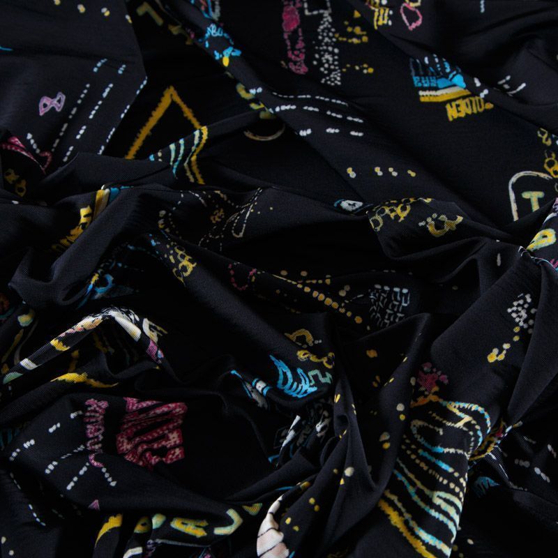 Трикотаж 056-12476 черный принтованный в Салехарде
