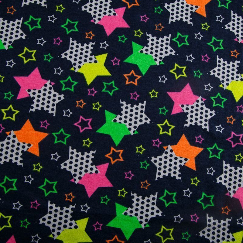 Мягкий трикотаж с ярким принтом на хлопковой основе с добавлением эластана. Полотно средней плотности, эластичное, достаточно пластичное, с лицевой, и с изнаночной стороны гладкая, приятная к телу. Кулирка отлично подходит для пошива нижнего белья, изделий для детей, а также для спортивной и домашней одежды, пижамы.