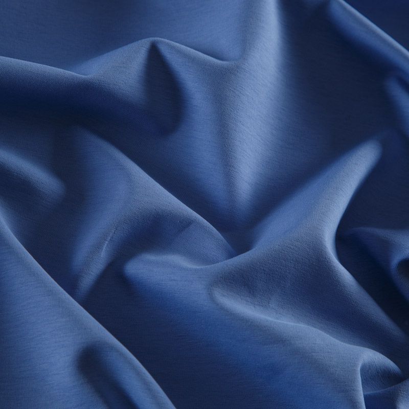 Трикотажное полотно средней плотности с хорошим смесовым составом. Материал очень мягкий, пластичный, тянется за счет эластана в составе. Поверхность гладкая, матовая, не просвечивает. Отлично подойдет для пошива изделий свободных и прилегающих силуэтов: платьев, лонгсливов, футболок, спортивной одежды. Трикотаж почти не мнется, очень прочный на разрыв.