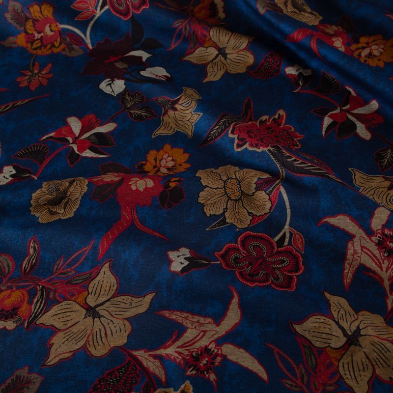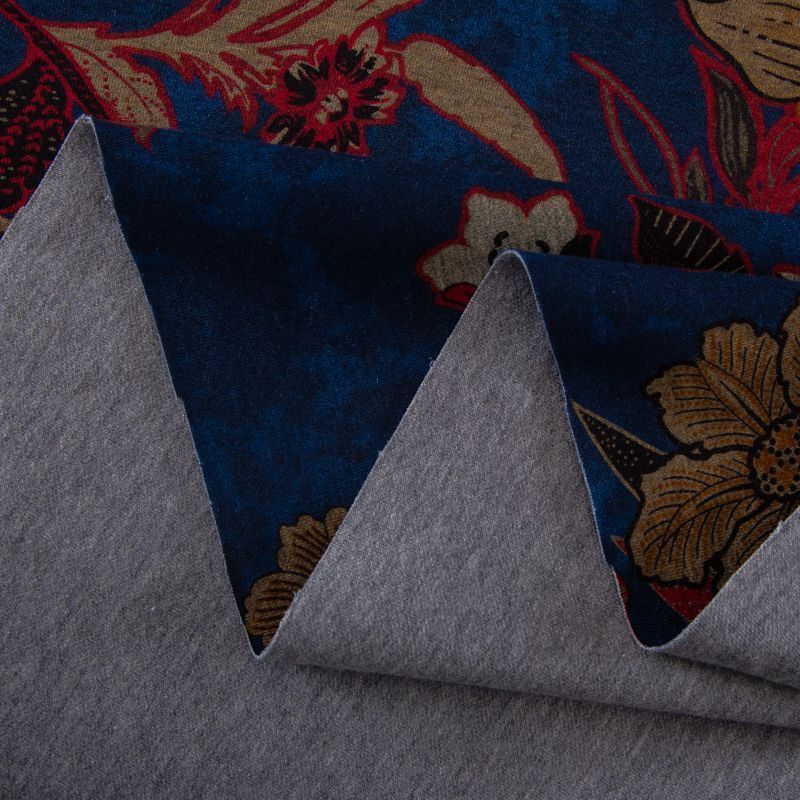 Трикотаж двухсторонний 056-19654 темно-синий принтованный в Салехарде