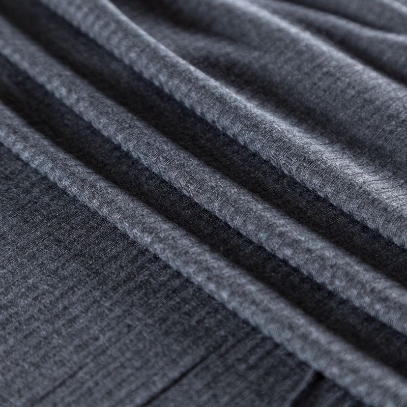 Трикотаж-лапша средней плотности, с высокой степенью эластичности, поверхность рельефная за счет эффекта резинки. С изнанки трикотаж гладкий, комфортный, подходит для использования без подклада. Сшить из такого полотна можно топы, лонгсливы, водолазки, платья,  юбки, брючные комплекты. Направление полос - вдоль линии кромки.