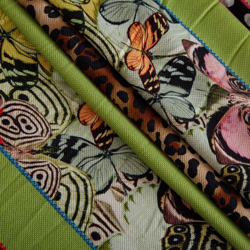 Трикотаж пике 056-14649 зеленое яблоко принтованный в Салехарде