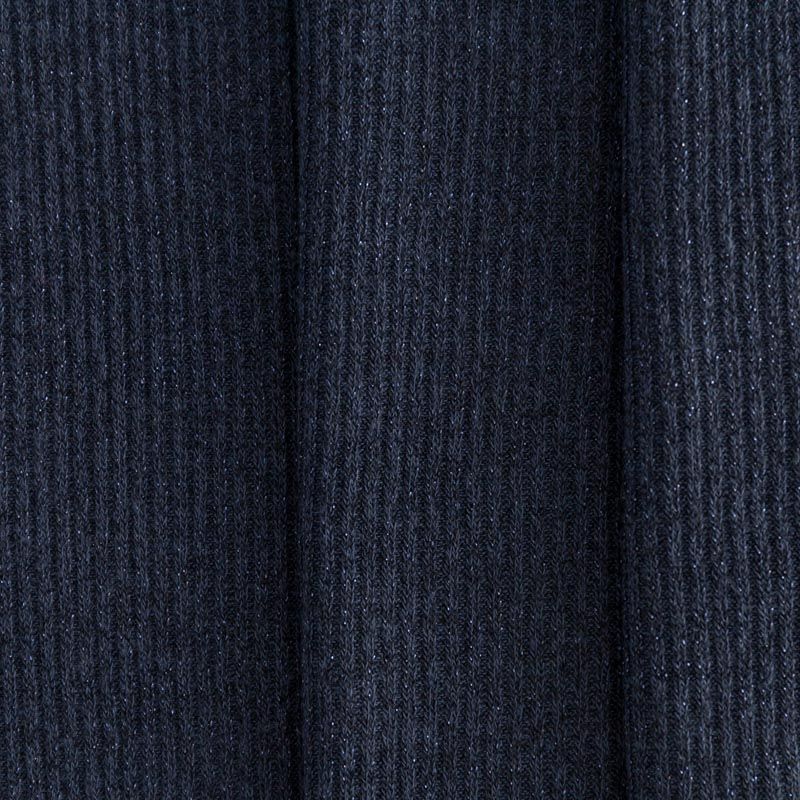 Трикотаж-лапша темно-синего цвета с люрексовой нитью. Мягкая и эластичная ткань, великолепно драпируется и красиво облегает. Прекрасно подходит для изделий по фигуре, а также нарядов с мягкими складками. Трикотаж можно использовать для вечерних образов — платья, блузки, топы, кардигана и боди.
